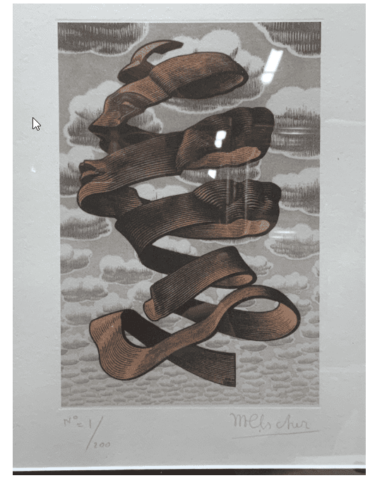 In recent years, an increasing number of forgeries of Escher’s works have appeared on the market. Unfortunately, art forgers are almost as productive as the artists themselves. Without the proper training, guidance, or experience, it can be very difficult to distinguish a genuine print from a fake. Auction houses sometimes use the terms “in the style/manner of” and “attributed to”, which in both cases primarily means that the work is NOT by Escher himself. It may look like something Escher could have made, but it is not. With these phrases, the auction house ensures that they have informed you about this. In reality, they want to trigger an “artist alert” in you and tempt you under the motto: “Wishful thinking.” But… if something seems too good to be true, it often is, especially when money is involved. Fortunately, the authenticity of Escher’s work is often relatively easy to determine. The fact that M.C. Escher’s work has been so precisely described – by himself and several close associates/experts in numerous reference works – is essential in this regard. To determine the authenticity of a work, it is useful to follow a few standard steps. The reference work “The Life and Work of M.C. Escher” by Bool, Kist, Locher, and Wierda is a good starting point.